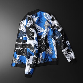 2021春夏新款外贸时尚印花男士休闲夹克亚马逊大码...