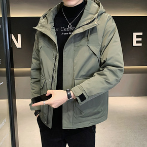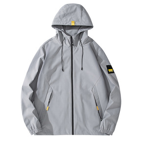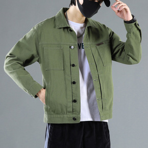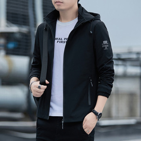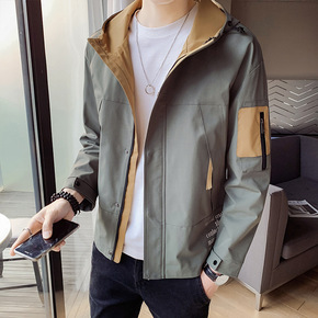 男士连帽外套2022春秋新款韩版宽松休闲工装夹克青...