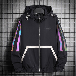 2022春季新款夹克休闲外套港风男士上衣炫彩反光条...