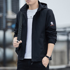 男装新款2022春秋夹克男韩版潮流连帽男士夹克休闲...