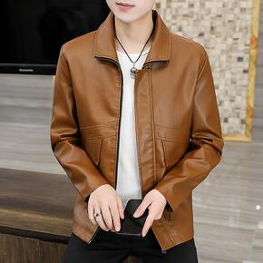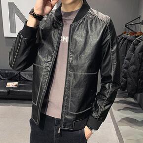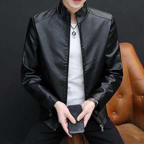 2021新款男士皮夹克衫韩版青年休闲加绒皮外套男装...