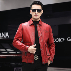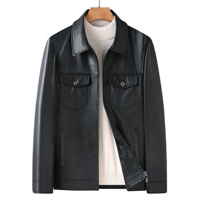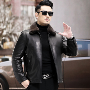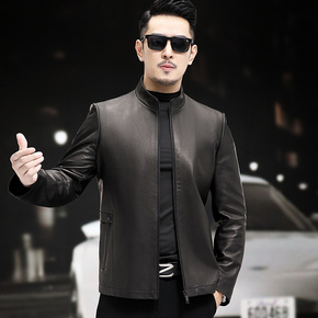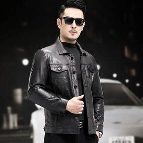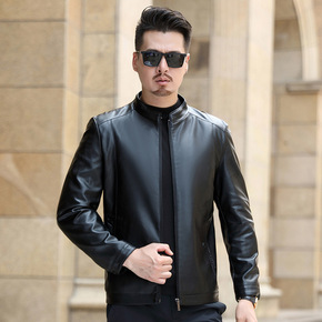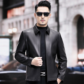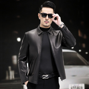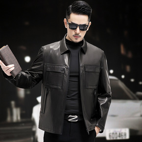 春秋新款男士翻领皮夹克真皮皮衣男山羊皮外套商务男装...