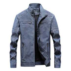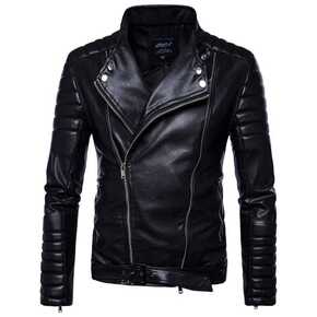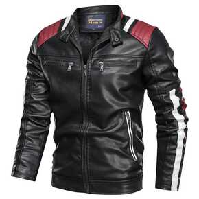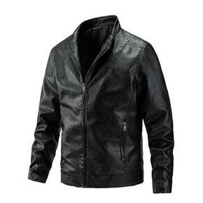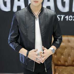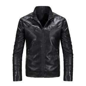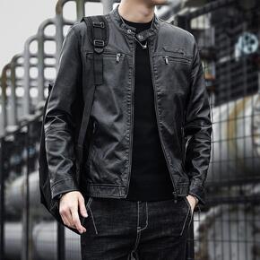跨境外贸2020春秋新款潮男式立领U皮衣男士机车夹...