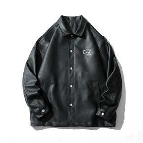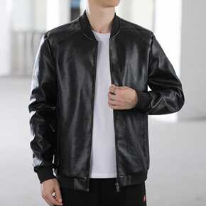 外贸男装春秋季男式皮衣立领纯色U皮夹克男外套休闲机...