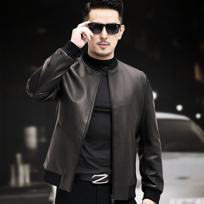 秋冬新款男士真皮皮衣男山羊皮夹克棒球领机车皮衣商务...