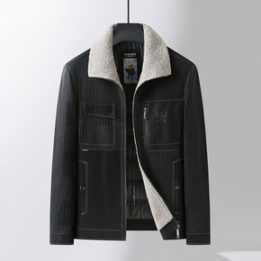 秋冬新款男士真皮皮衣男山羊皮夹克多口袋工装男装韩版...
