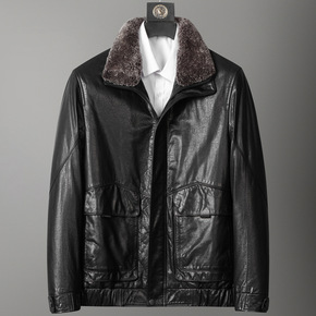 2022秋冬新款男士真皮羽绒服男油蜡牛皮夹克加厚外...