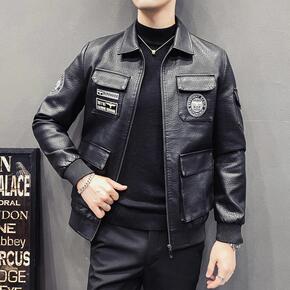 外贸皮茄克爆款男式时尚U皮衣休闲男装外套韩版机车皮...