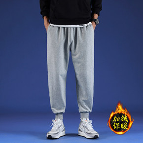 加绒加厚卫裤男士休闲长裤子秋冬季带绒保暖外穿宽松束...