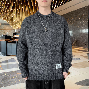 半高领毛衣男复古街头潮牌秋季休闲宽松慵懒针织衫男上...