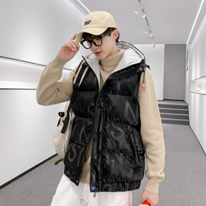 高品质2021年连帽休闲保暖情侣棉马甲潮牌上衣无袖...