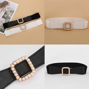 韩版简约女士珍珠扣装饰小腰封厂家直供新款时尚松紧带...