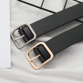 女士皮带方扣针孔圆扣免孔亚马逊跨境复古潮流pu鳄鱼...