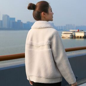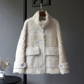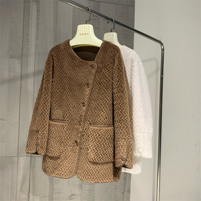2022新款100全羊毛剪绒羊羔毛皮草外套开衫短款...