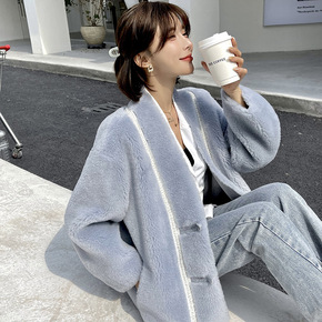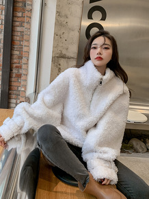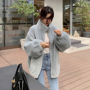 2021新韩版立领宽松显瘦颗粒绒皮草外套女冬羔羊毛...
