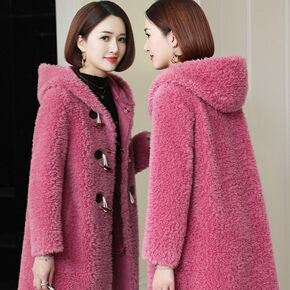 泰迪熊大衣女2022冬季新款羊剪绒中长连帽羊羔毛皮...