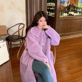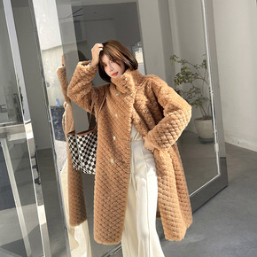 冬季反季清仓羊驼毛羊剪绒皮毛一体大衣中长款宽松气质...
