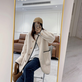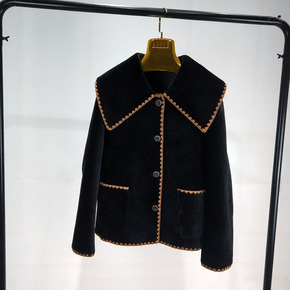 2022新款羊羔毛外套女 皮毛一体羊剪绒皮草花边 ...