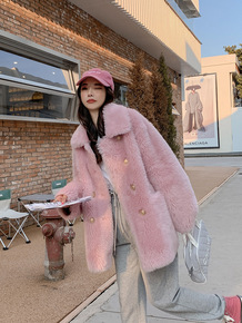 反季2021秋冬新款颗粒羊绒大衣皮毛一体外套女加厚...