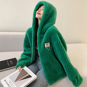 羊羔毛皮草2022冬季新款颗粒羊剪绒大衣连帽年轻款...