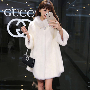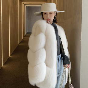 秋冬季新品大衣皮草外套女中长款显瘦外贸韩版潮仿狐狸...