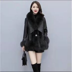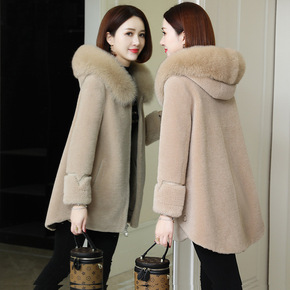 羊剪绒大衣女2021新款冬季颗粒羊毛狐狸毛海宁皮草...