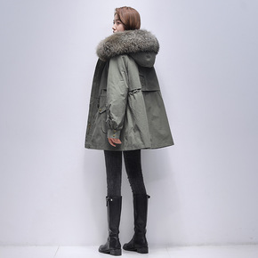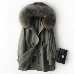 海宁2021年秋冬新款狐狸毛内胆派克服女皮草外套中...