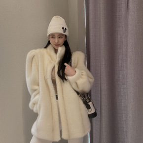 韩国仿皮草冬季水貂毛大衣女韩风时尚泡泡袖灯笼袖炸街...