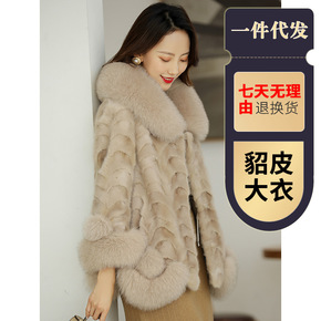 2020冬装新款 整皮海宁兔毛皮草女款外套狐狸毛领...