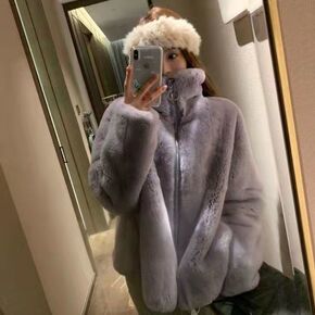 包邮皮草外套女秋冬新款獭兔毛2021款网红气质立领...
