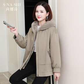 2021冬季皮毛一体宽松羊羔毛外套女加绒加厚短款夹...