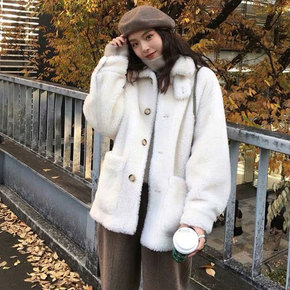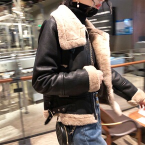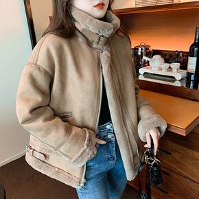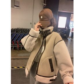 辣妹2021冬季皮毛一体宽松羊羔毛外套女加绒加厚短...