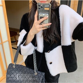 羊羔毛短款外套女冬加绒加厚21新款颗粒绒皮毛一体小...