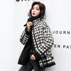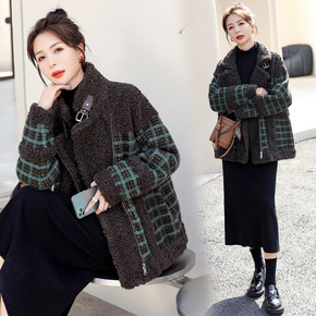 羊羔绒皮毛一体短款外套女2021冬季新款韩版立领格...