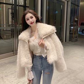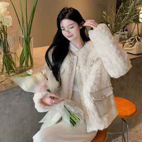仿兔毛短外套女2021秋冬新款仿羊羔毛皮毛一体加厚...