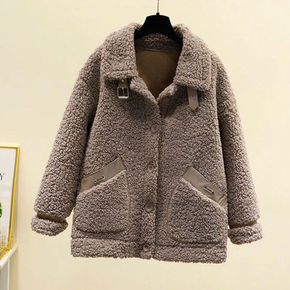加厚羊羔毛外套女2021冬季新款宽松颗粒绒皮毛一体...