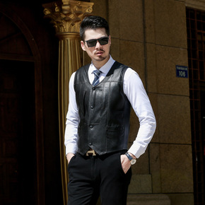 小貂毛绒男士皮毛大衣一体男短款背心皮衣貂毛皮草马甲...