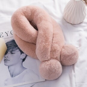 新款獭兔毛围巾双管围脖秋冬季女士加厚保暖皮草围巾围...