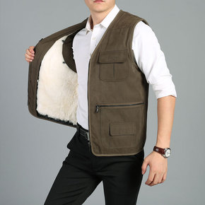羊毛坎肩女男皮毛一体秋冬季厂家批发保暖加厚棉马夹皮...