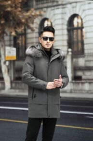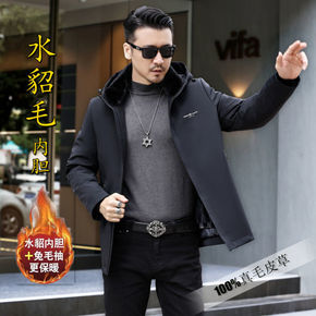 新款派克服男真毛皮草水貂獭兔毛内胆修身可拆卸皮毛一...
