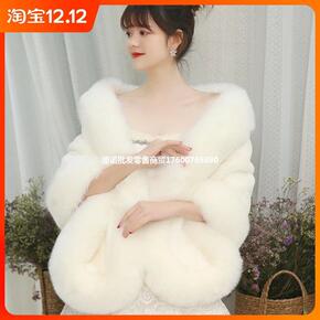 2021新款水貂围巾皮草披肩女秋冬防寒保暖仿狐狸毛...