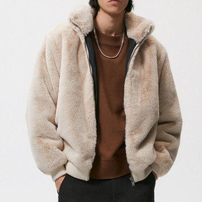 原产地厂家批发獭兔立毛领子方领男士尼克服通用立领短...