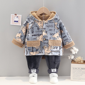男童女童冬装卡通外套儿童加厚派克服新款儿童长款加绒...