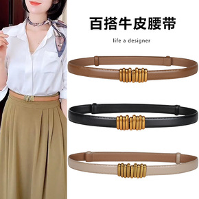 真皮女细腰带装饰大衣腰封配连衣裙子西装毛衣时尚百搭...