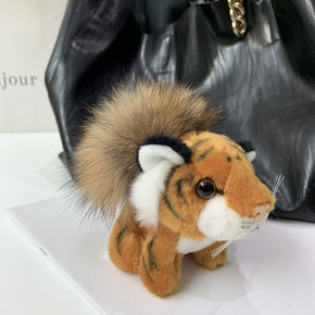 小老虎皮草钥匙扣可爱东北虎毛绒玩具毛球包挂饰虎年男...