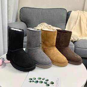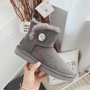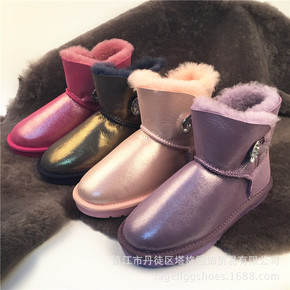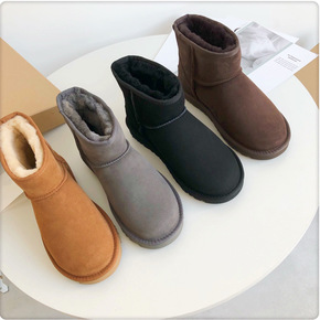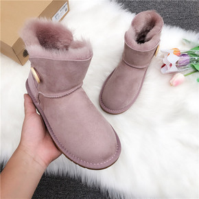 纽扣款3352低筒雪地靴女磨砂羊皮毛一体防滑保暖轻...