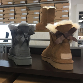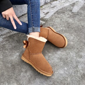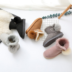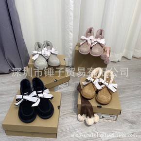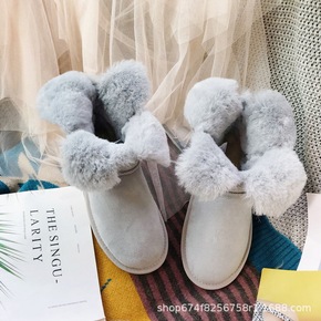 2019冬季平底保暖单蝴蝶结羊皮毛一体雪地靴女工厂...