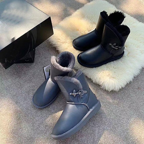 20新款澳洲羊皮毛一体短靴头五金搭扣保暖滑 搭女士...