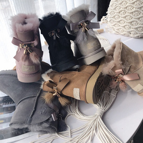 凯琳雪地靴2代羊皮毛一体休闲鞋羊毛雪地棉球球丝带公...