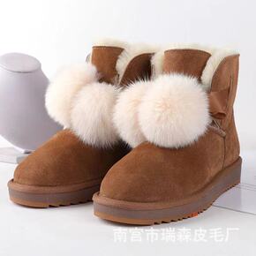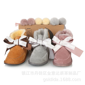 蝴蝶结毛球雪地靴7588女新款时尚羊皮毛一体加厚短...